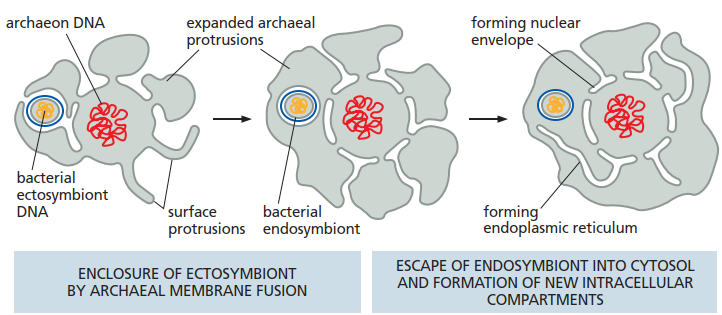 证据表明,这一事件发生在大约 20 亿年前——当时地球上已存在 15 亿年以上的原核生物。那时,一个古细菌细胞与一个细菌细胞发生了融合,最终形成了最初的真核细胞。